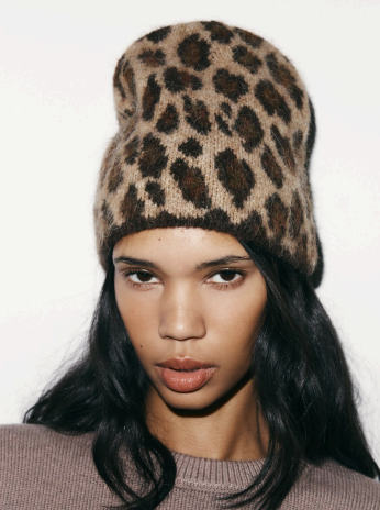 Zara Animal Print Knit Beanie